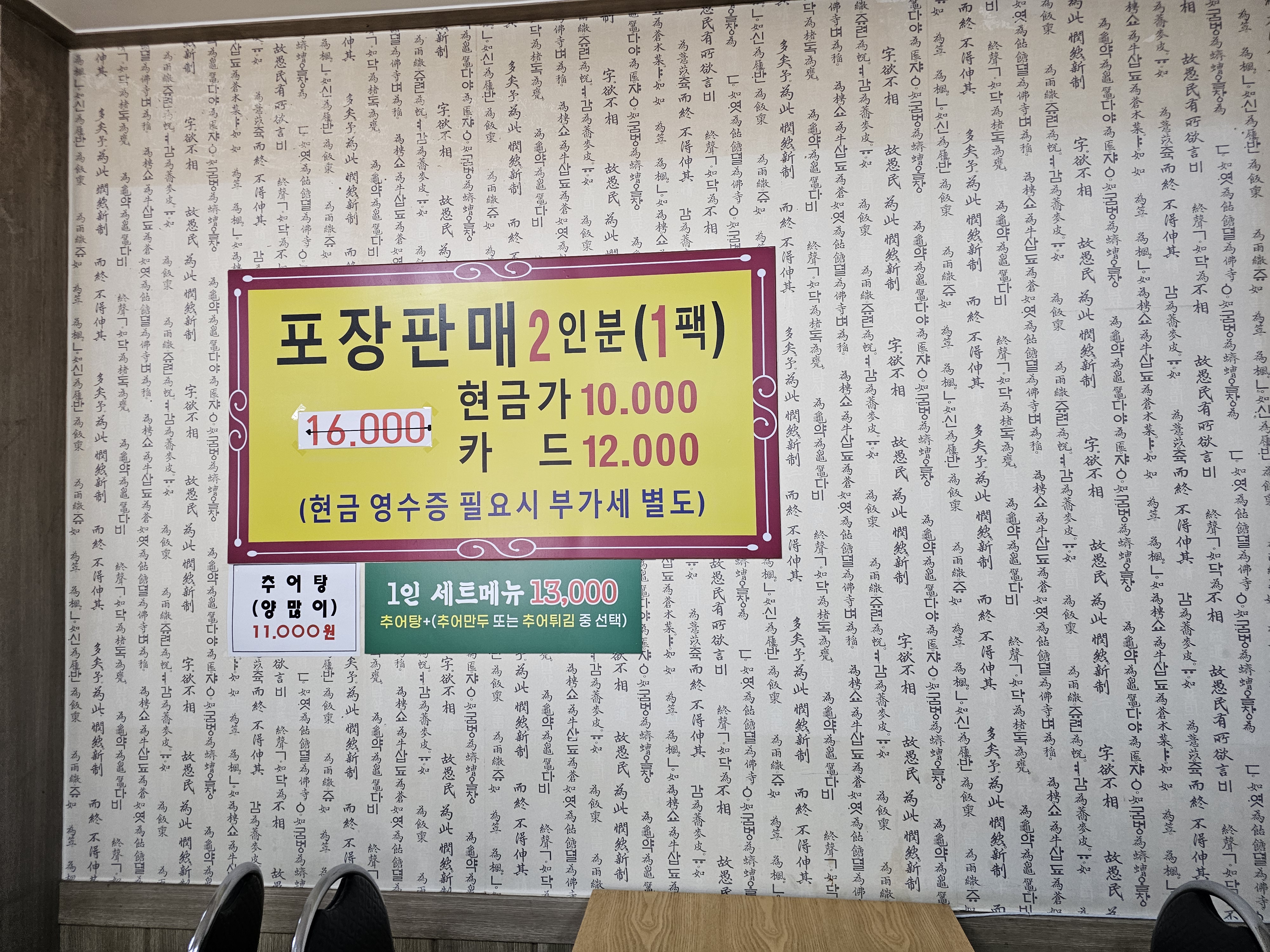 세트메뉴에는 추어만두와 추어튀김을 선택할 수 있는데...
