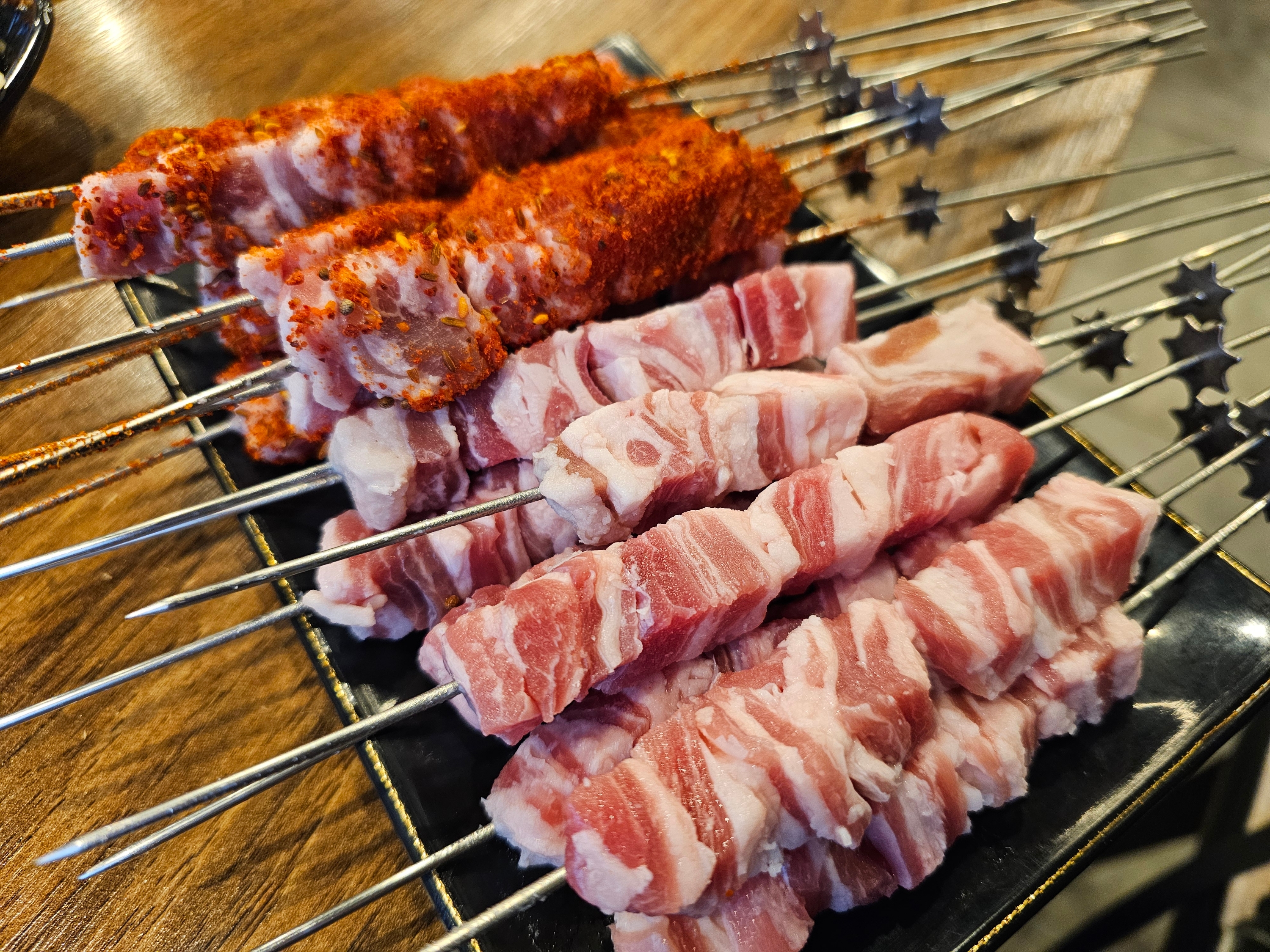양꼬치 양념과 생으로 한 개씩 주문...